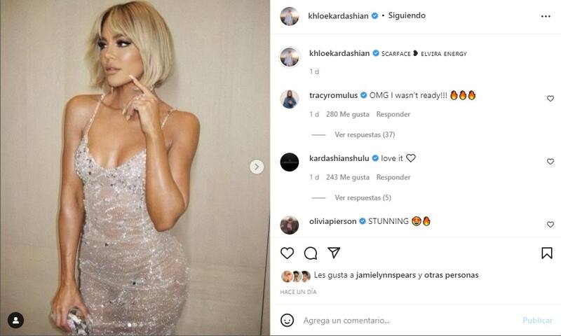 Khloé Kardashian lució un radiante vestido de brillantes de Celia Kritharioti, con un nuevo look de cabello estilo melena, inspirado en Michael Pfeiffer en "Scareface" y un bolso que asemejaba a un diamante.