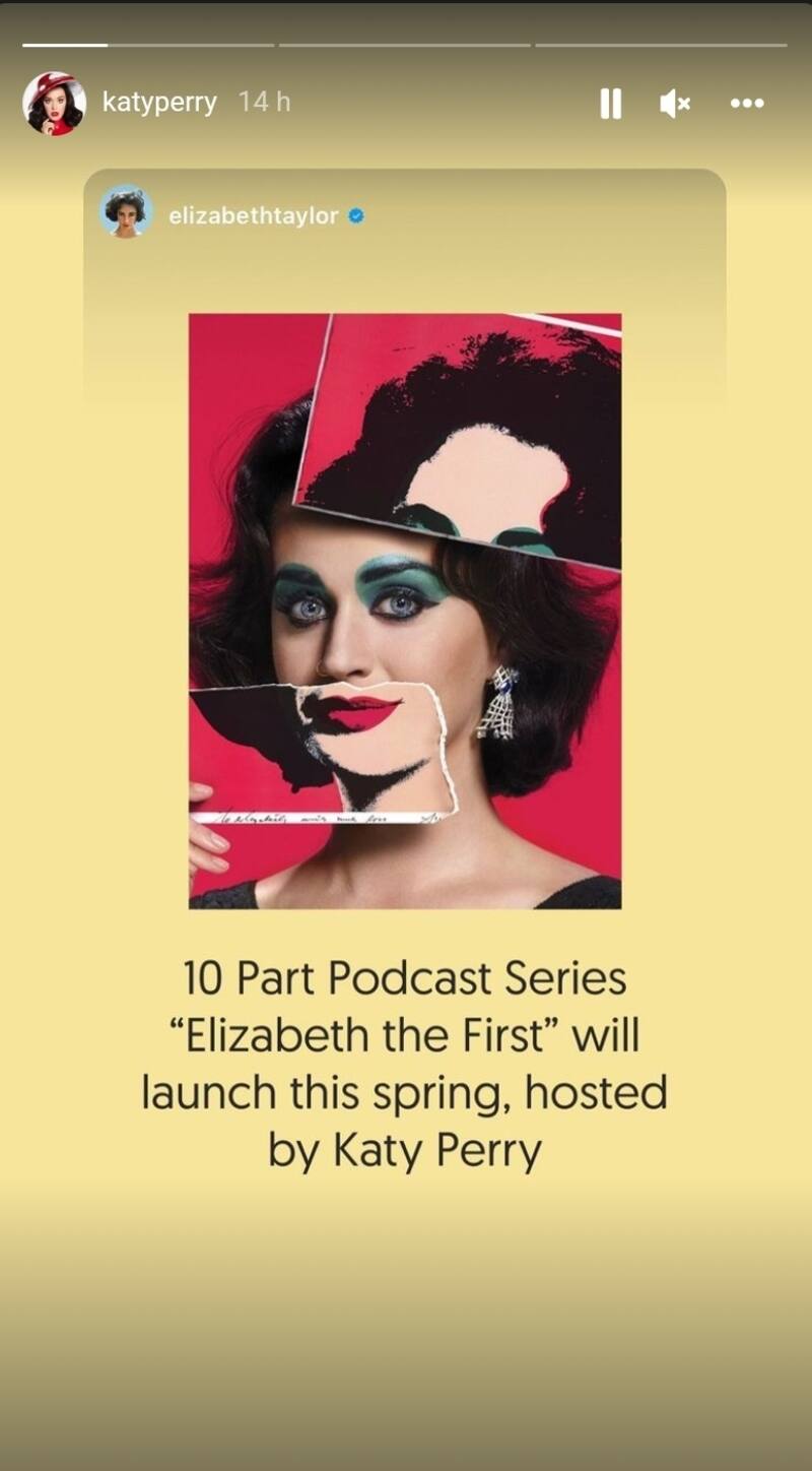 Su carrera y todo el glamour que envolvió a una de las últimas estrellas de la era dorada de Hollywood será narrada por la cantante Katy Perry a través de una serie en podcast titulada "Elizabeth First".