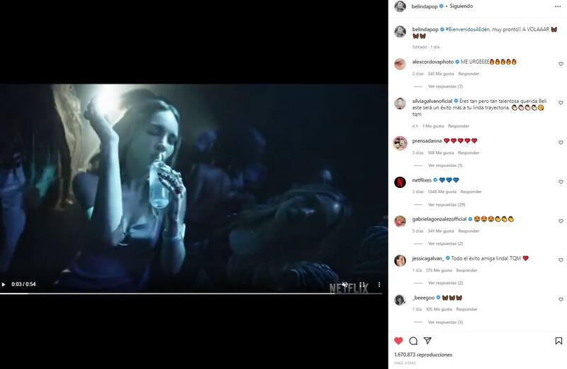 Además publicó un adelanto de "Bienvenidos a Edén", la nueva serie española de Netflix que grabó el año pasado pero que apenas verá la luz en la plataforma de streaming.