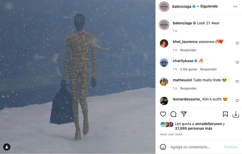 Además, cabe mencionar que no se trató de una extravagancia de la socialité, sino que dicho look, fue el #27 de la colección de Balenciaga que llevó la modelo Awar, presentado en el desfile de Paris Fashion Week, el cual por cierto, se realizó en homenaje a Ucrania.