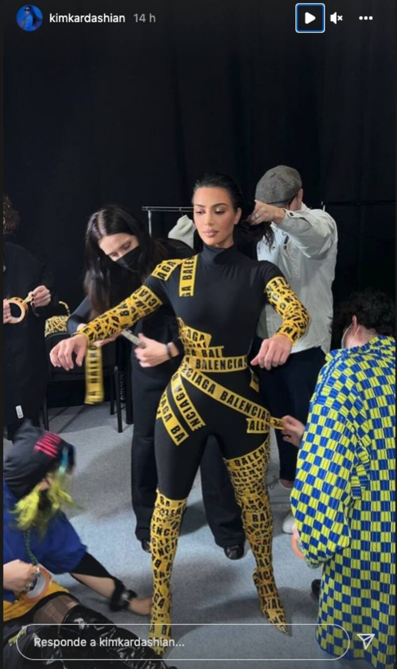 Para el desfile de la colección otoño/invierno 2022 de Balenciaga en Paris Fashion Week, Kim Kardashian se sometió a un proceso previo bastante incómodo, pues para su llamativo look, tuvo que ser cubierta con cinta adhesiva.