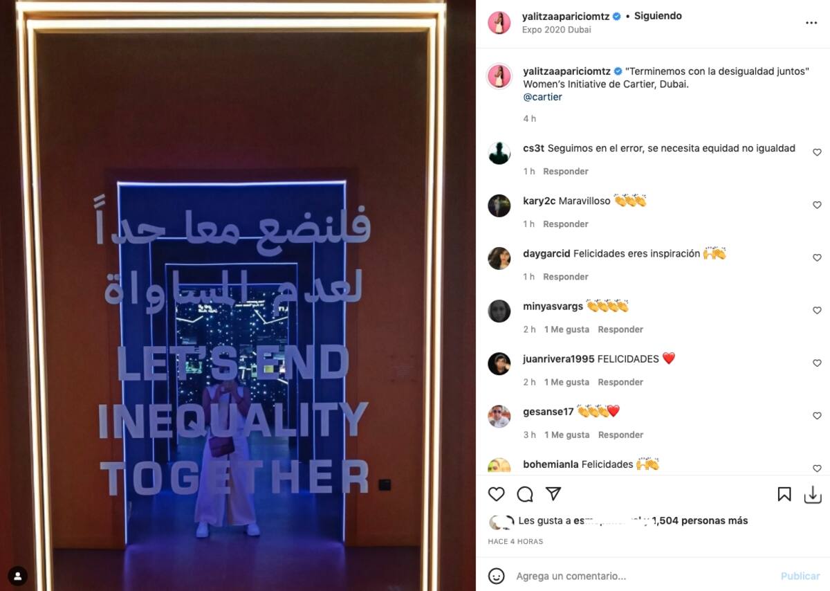 Para prueba su más reciente viaje a Dubai de la mano de la marca de joyería Cartier, con el propósito de estar presente en los premios "Impact Awards", un evento dedicado a la búsqueda del conocimiento y el progreso de la humanidad, los cuales son otorgados por Cartier Women's Initiative.
