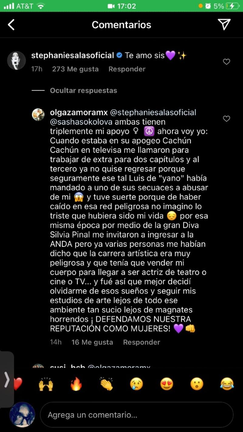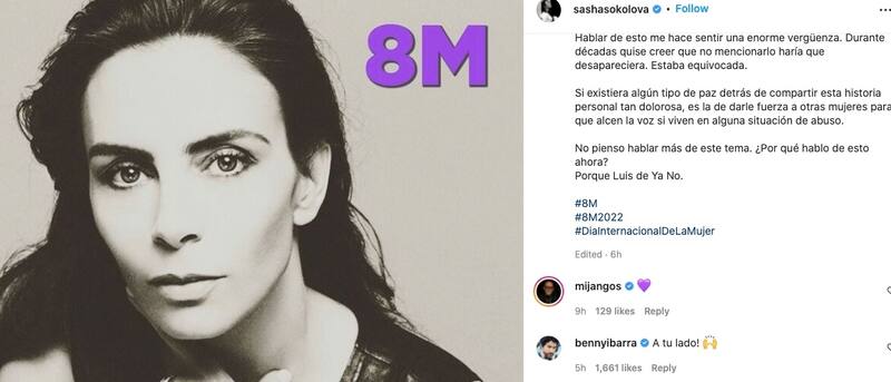 Desde muy temprano, la conductora Rebecca de Alba se pronunció en las dos publicaciones que colgó Sasha Sokol en su cuenta de Instagram para narrar su desgarradora experiencia con Luis de Llano cuando ella tenía 14 años y él 39; cuando ella buscaba un lugar en el mundo del espectáculo y él era su productor y mánager. Una relación de abuso.