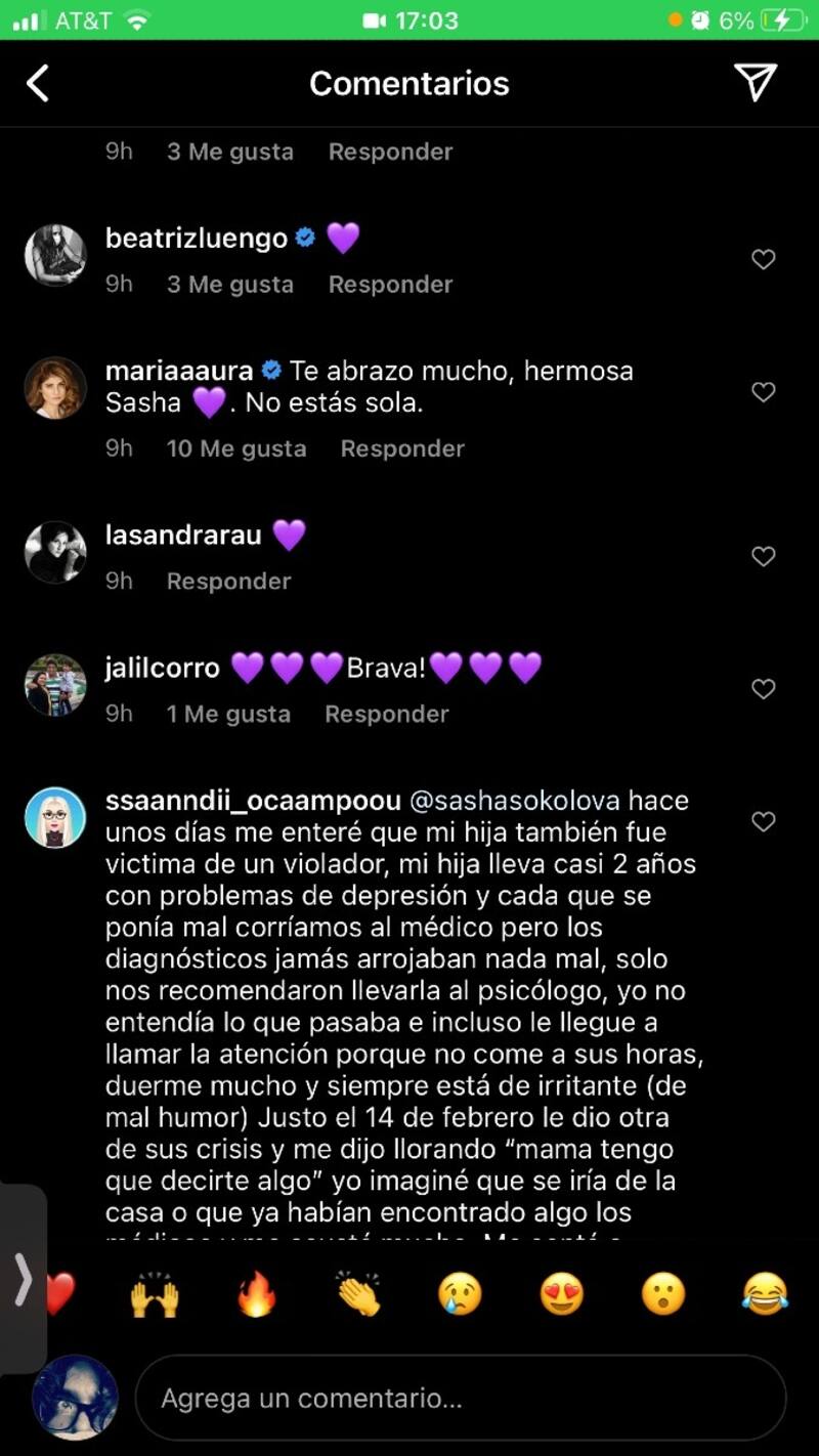 En tanto, Stephanie Salas dijo: "Te amo sis" al lado de un corazón púrpura. María Aura, por su parte, escribió: "Te abrazo mucho hermosa Sasha. No estás sola".