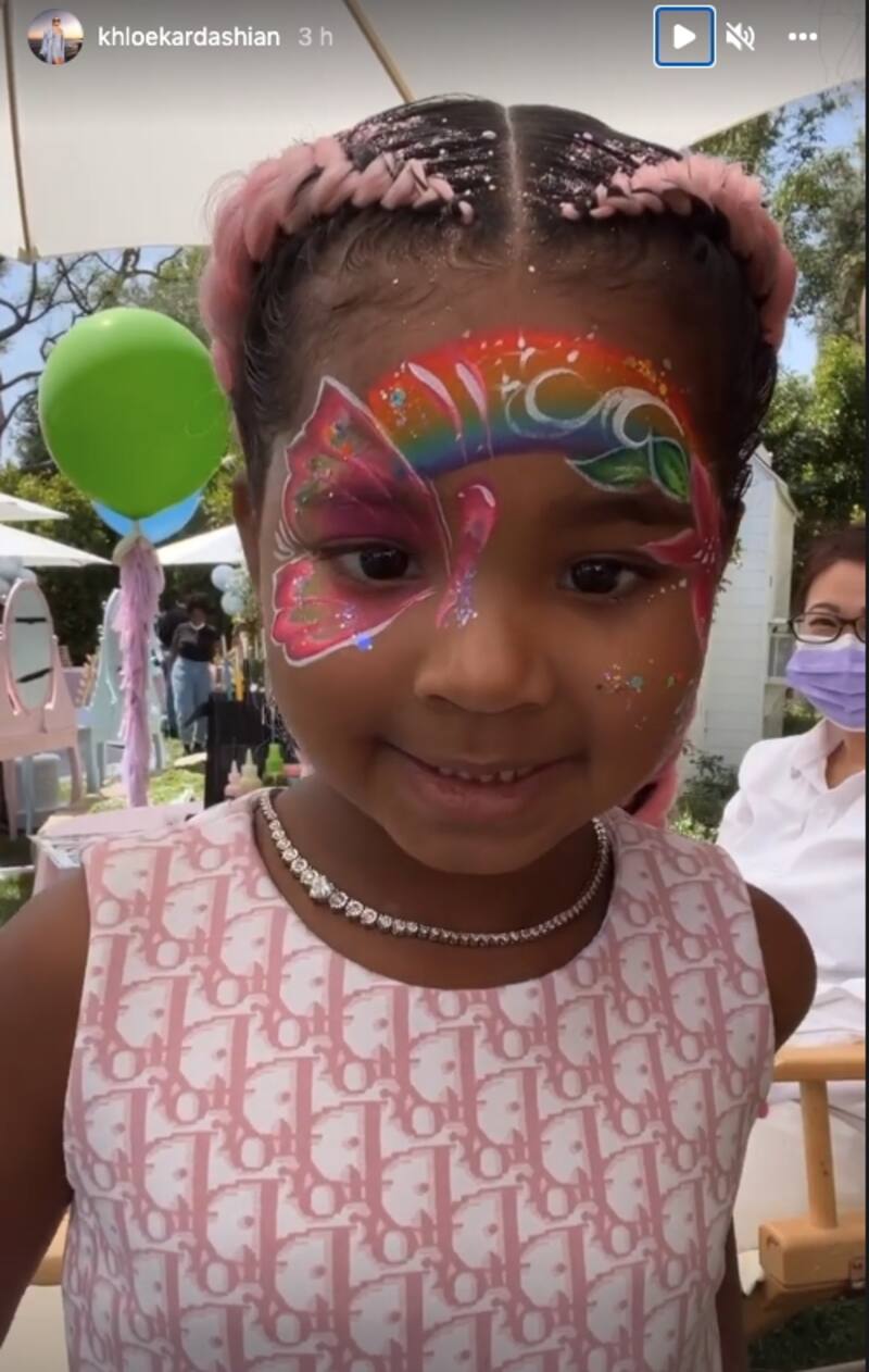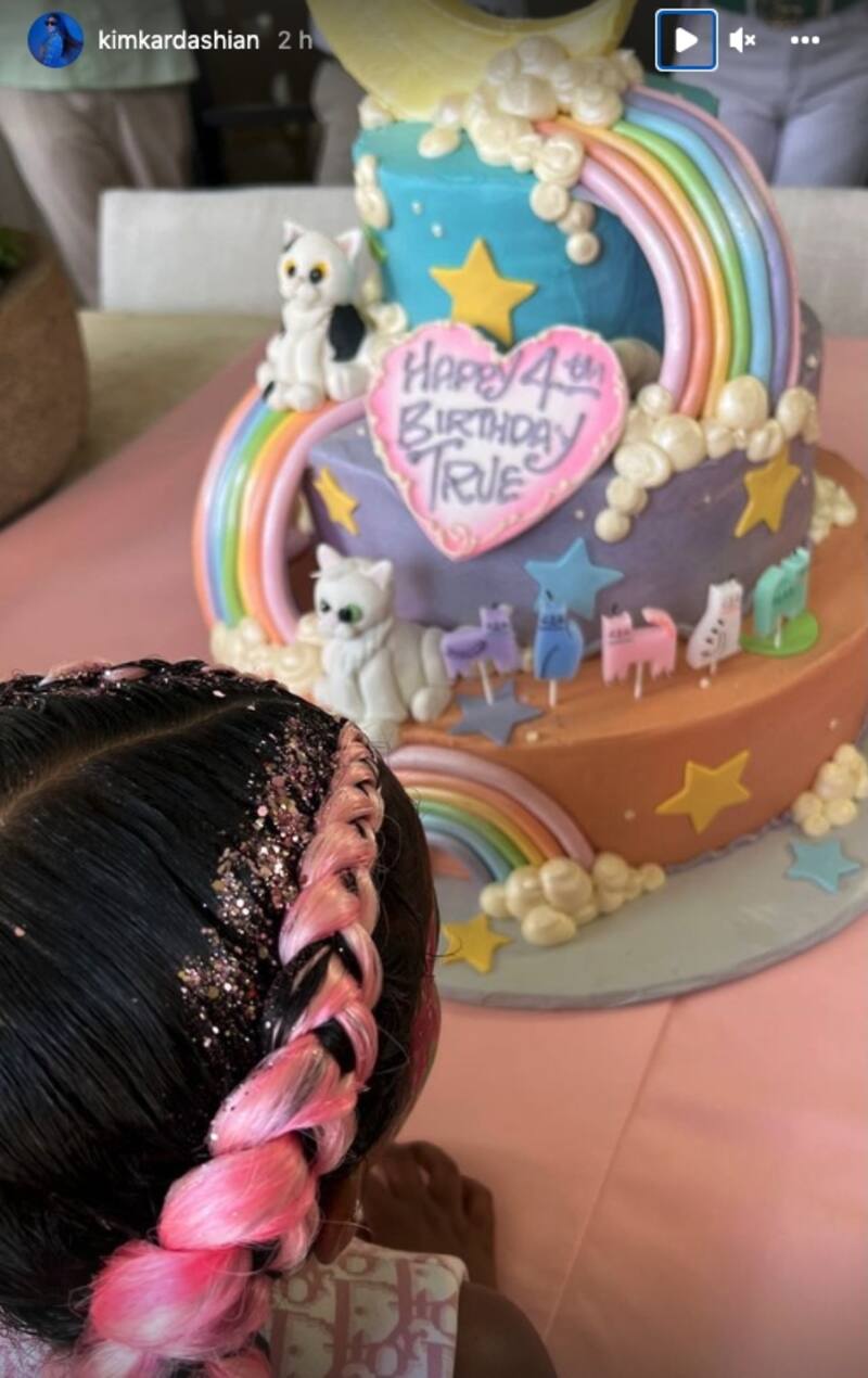 Además, la festejada lució un espectacular peinado: dos trenzas con extensiones rosas y glitter. A la fiesta asistieron todos sus pequeños primos: Dream (hija de Rob Kardashian), Chicago y Psalm (hijos de Kim Kardashian), Stormi (hija de Kylie Jenner) con quienes fue captada jugando y bailando.