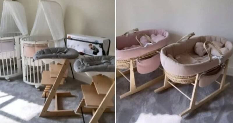 El cuarto de los mellizos de Georgina Rodríguez y Ronaldo, quien juega para el Mánchester United de la Premier League en Reino Unido y es uno de los futbolistas en activo mejor pagados del mundo, tiene dos cunas, dos moisés y dos sillas decoradas en tonos grises y beige.