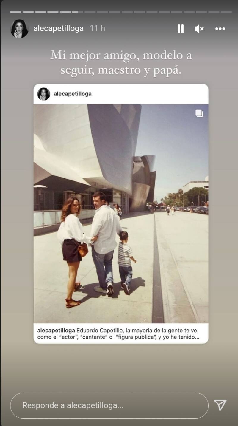 La modelo publicó su mensaje con tiernas fotografías familiares en donde aparecen sus papás juntos y otras donde Eduardo Capetillo fue protagonista de la telenovela "Alcanzar una estrella". La publicación fue hecha desde temprana hora porque en España, dijo, "ya es cumpleaños de mi persona favorita".