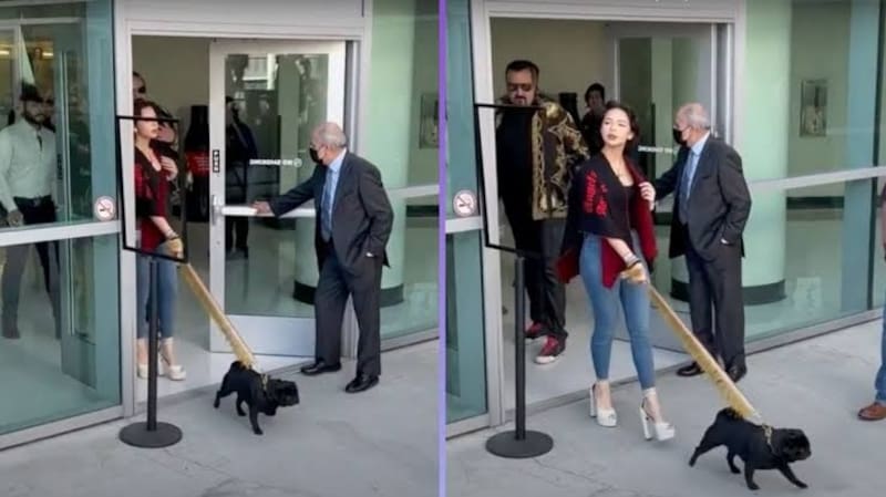 Grabaciones compartidas en redes sociales detallan el momento en que Ángela Aguilar tuvo una mala actitud con un trabajador adulto mayor, quien le abrió la puerta de un edificio del que salía la cantante junto con su perro.