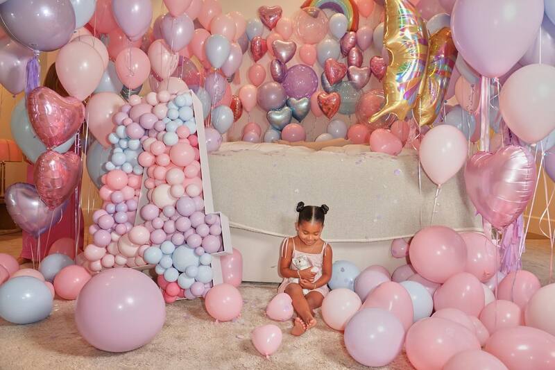 Para acompañar una sesión de fotos en la que la pequeña festejada aparece posando entre decenas de globos en colores pastel, Khloé Kardashian escribió un dulce mensaje que comenzaba de la siguiente manera: "¡Parpadeé y tienes 4 años!".