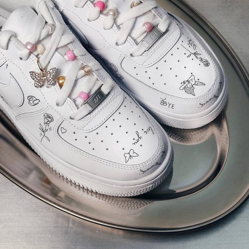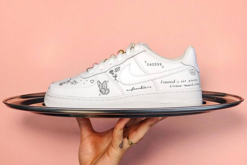 Aficionada también a la moda, la madre de David Beckham, contactó al artista Adam Claridge para que diseñara algo único y especial con lo que dar la bienvenida a Nicola a la familia. El artista eligió un par de zapatillas Nike Air Force 1 blancas que decoró con dibujos y mensajes personalizados con sus recuerdos más emotivos.