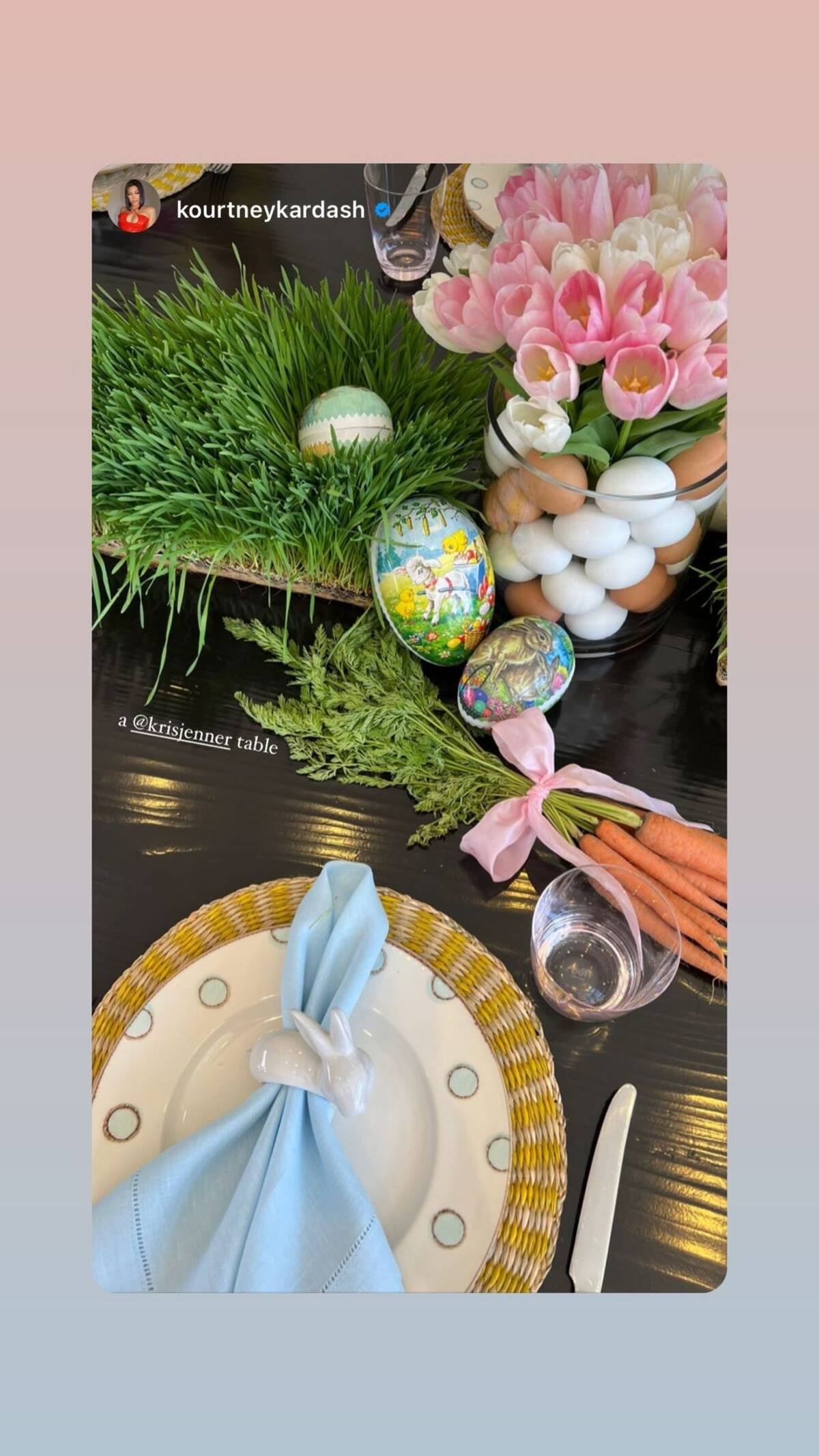 A su vez, Kylie Jenner dio a conocer las hermosas decoraciones en la casa de su madre en su historia de Instagram. Mientras que Kourtney Kardashian también compartió la configuración de la mesa que muestra los huevos de Pascua con los nombres tallados de ella y su prometido, Travis Barker.
