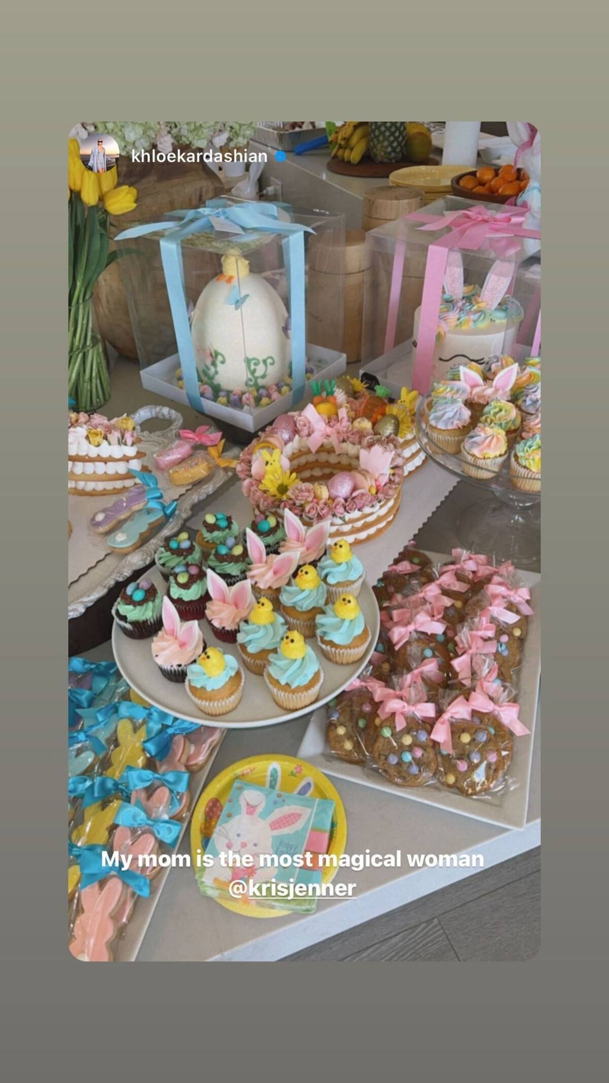 Kris publicó con orgullo su fantástica fiesta en su residencia a través de una historia de Instagram, incluida una foto de ella con Khloé Kardashian con atuendos a juego. "Feliz Pascua de mi parte y de mi conejito @khloekardashian", escribió.