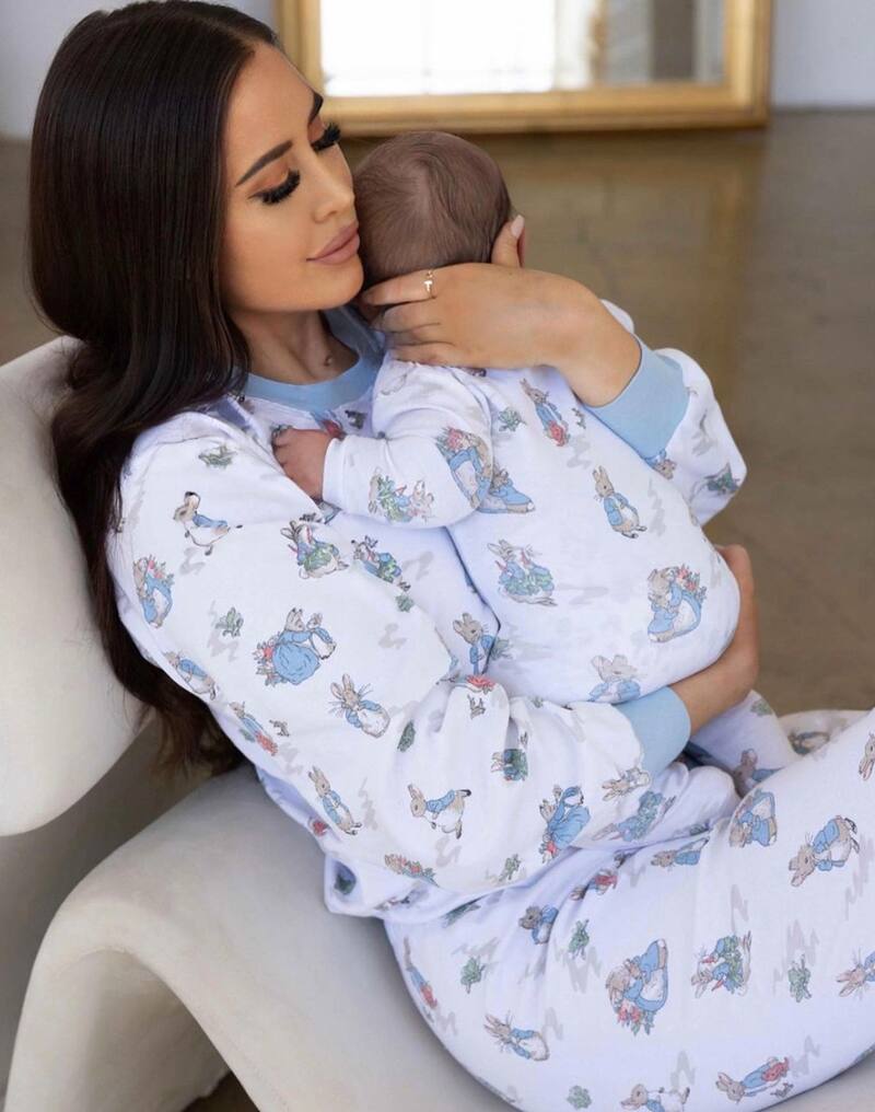 En ella, aparecen ambos usando la misma pijama, que tiene un estampado del conejito de Pascua.