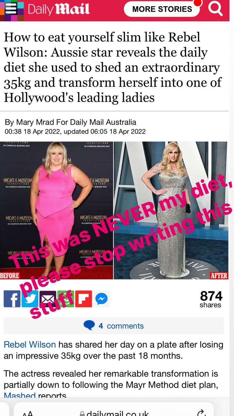 Rebel Wilson siempre tuvo confianza en su tamaño antes y después de emprender este reto de pérdida de peso, por ello quiere asegurarse que sus fans estén se sientan seguros y no tomen información que circula en redes sociales.