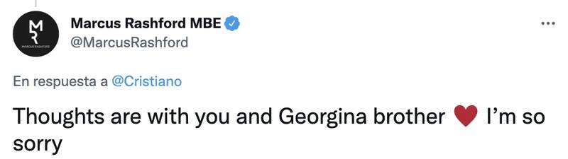 Marcus Rashford, su compañero, le envió un mensaje de condolencia diciendo: "Mis pensamientos están con vos y Georgina, hermano. Mi más sentido pésame".