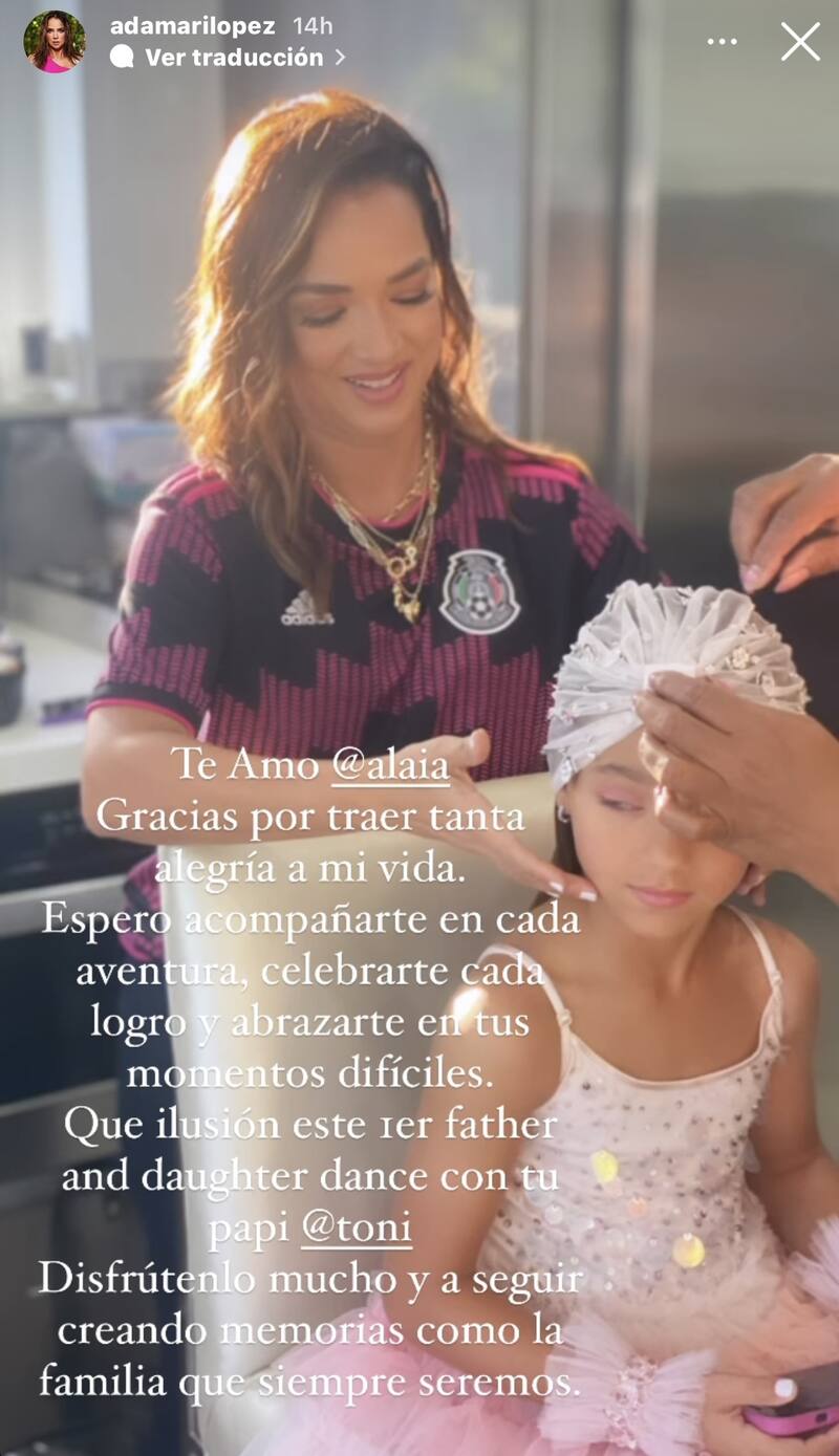 "Te amo, Alaïa. Gracias por traer tanta alegría a mi vida. Espero acompañarte en cada aventura, celebrarte cada logro y abrazarte en tus momentos más difíciles. Que ilusión este primer baile padre e hija con tu papi Toni Costa. Disfrútenlo mucho y a seguir creando memorias como la familia que siempre seremos", escribió Adamari López.