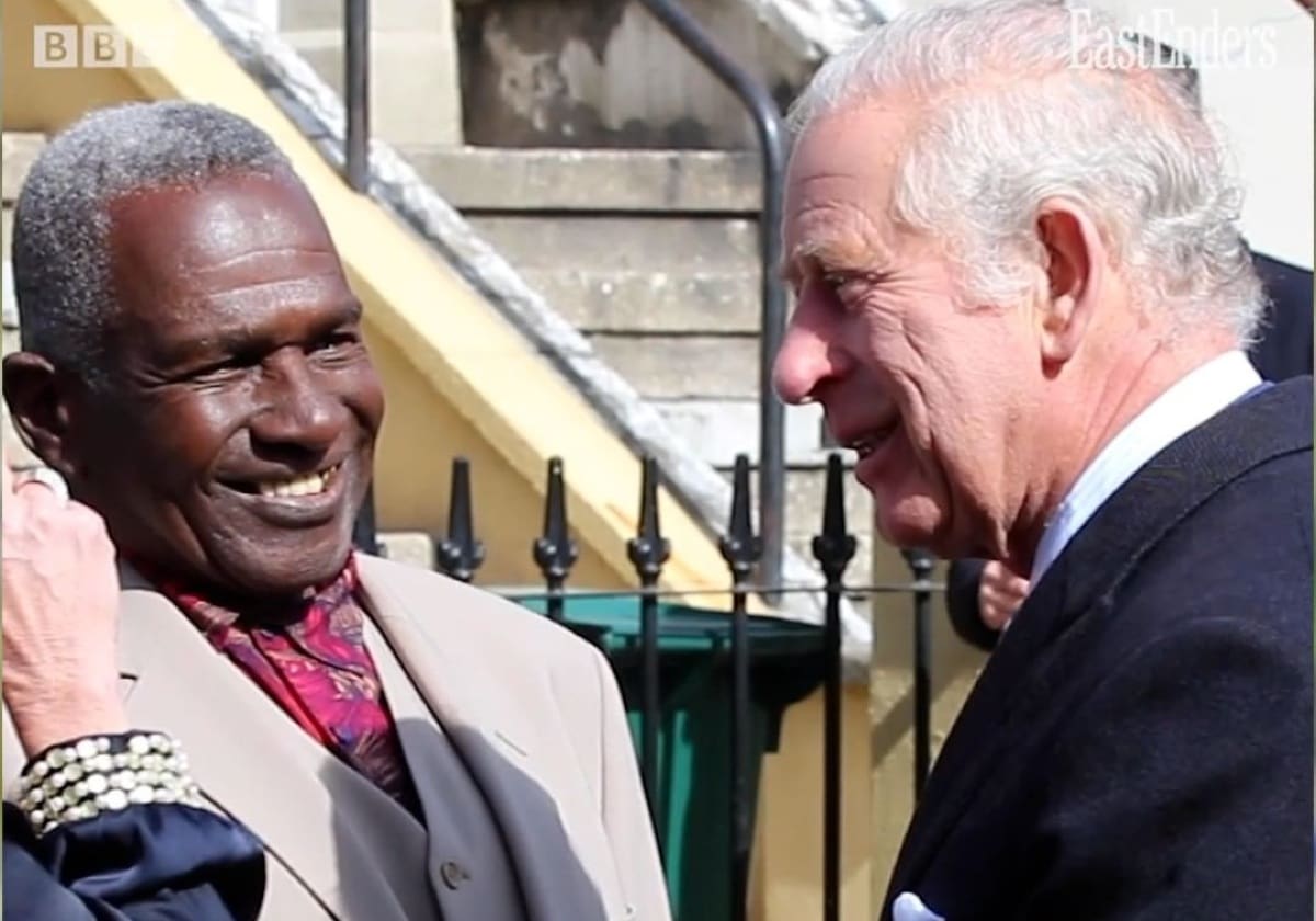 Letitia Dean, quien estuvo en el primer episodio de la telenovela pero que ha aparecido en poco más de 2400 episodios de los más de 8 mil que ya suma la serie, le dijo al príncipe, según reporta “The Sun”: "Tienes el abrigo puesto, muy sabio", pues ella temblaba de frío.