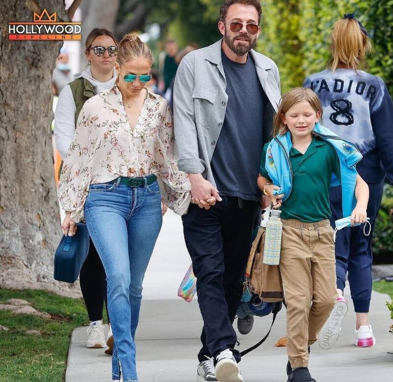 En las imágenes que se hicieron virales en redes sociales se puede ver a los Bennifer tomados de la mano mientras caminan con el menor de 10 años rumbo a casa.