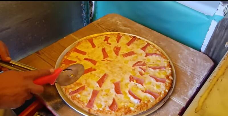 Después se le añade jitomate, queso y el resto de los ingredientes que se deseen añadir; en este paso, Yalitza Aparicio y su papá le agregaron jamón y piña para hacer la pizza hawaiana. Finalmente se mete al horno y después de unos minutos, estuvo lista para servir y degustarse.