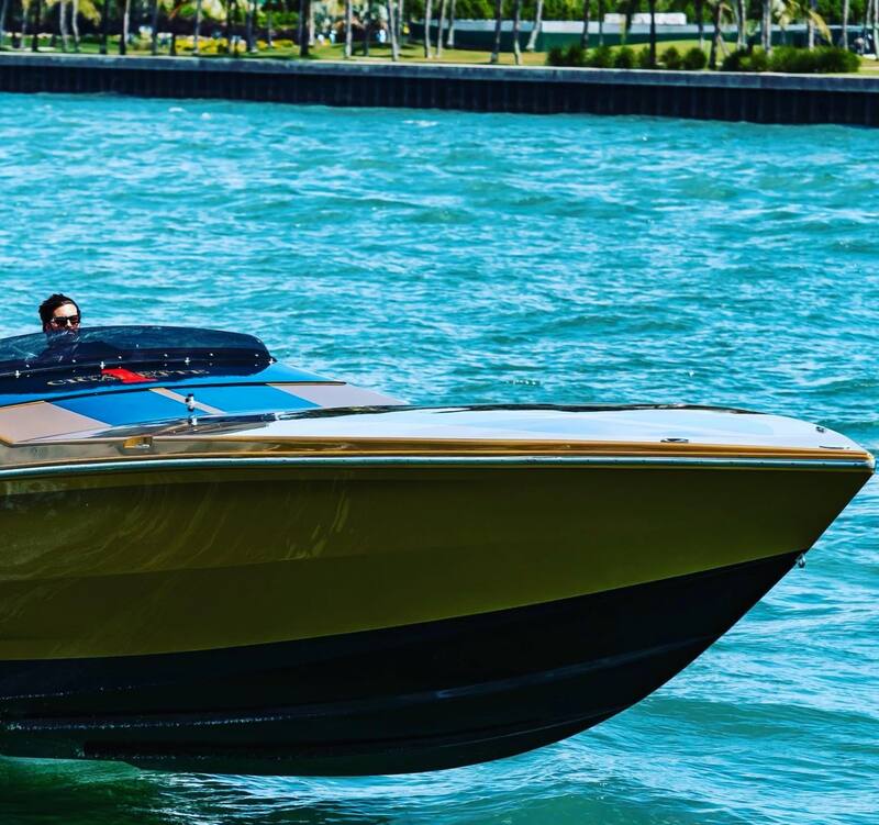 El empresario de 38 años compartió una foto de sí mismo encima de un bote en Miami en donde escribió como leyenda: "En el 295, simplemente llámame tu Good Luck Chuck".