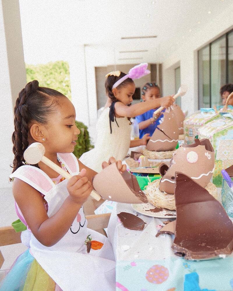 En las otras fotografías aparece Chicago junto a su abuela Kris y sus primas Stormi y Dream, mientras que en otra, se muestra ese momento en el que la pequeña junto a sus primos y hermanos rompen un enorme huevo de chocolate.