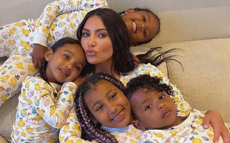 A propósito, Kim Kardashian publicó algunas fotografías de aquella celebración, en primer lugar, una en la que aparece con sus cuatro hijos: North, Saint, Chicago y el pequeño Psalm, usando todos pijamas iguales.