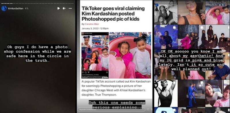 No obstante en publicaciones posteriores, Kim Kardashian admitió que efectivamente ha utilizado Photoshop para retocar unas fotos, como por ejemplo cuando eliminó a Stormi, la hija de Kylie Jenner, de las fotos que subió con las pequeñas en una visita a Disneylandia de 2021. En su lugar puso a True, la hija de Khloe Kardashian.