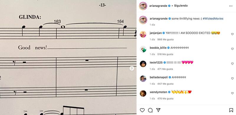 Ariana Grande ha compartido recientemente algunos cambios de este proyecto que la tiene tan ilusionada. Uno de los más importantes es que han cambiado las fechas de grabación y se ha retrasado el estreno. Pero la noticia más importante es que publicó una partitura musical con la descripción "Good News" seguido de la sorpresa que no habrá una película ¡sino dos! La trama será dividida en dos partes porque no querían recortarla de más.