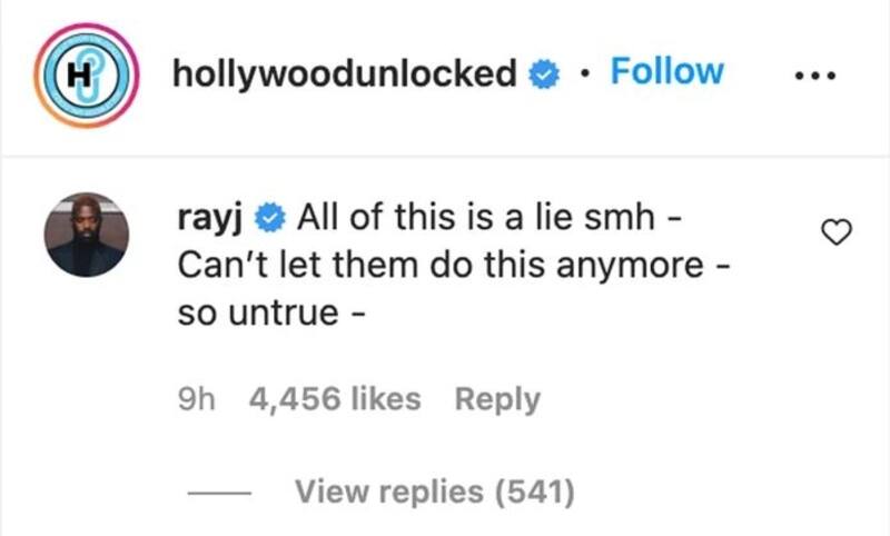 "Todo esto es una mentira, smh", escribió al pie de una publicación de Instagram de Hollywood Unlocked, en la que se podía ver un fragmento del programa. "No puedo dejar que sigan haciendo esto, tan falso", agregó.