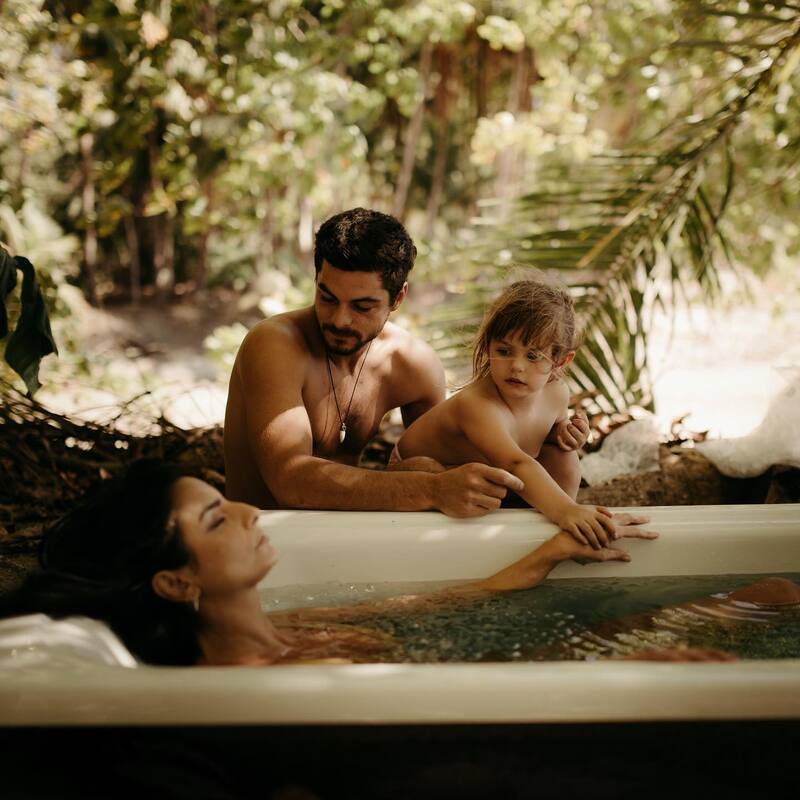 En una segunda fotografía de la galería de Aislinn Derbez, la actriz aparece también en la bañera, mientras que afuera, se encuentra su instructor con la pequeña Kailani.
