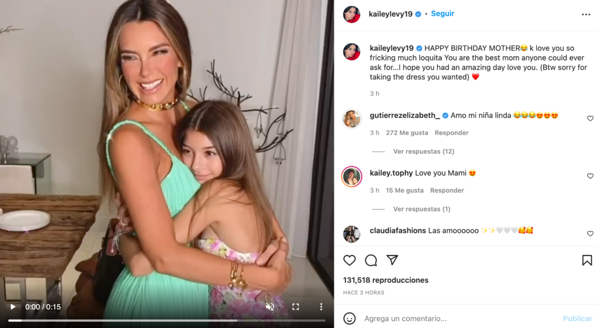 Mientras que Kailey Levy publicó un video junto a Elizabeth Gutiérrez y escribió: "Te amo mucho loquita. Eres la mejor mamá que pude haber pedido. Espero que hayas tenido un increíble día".