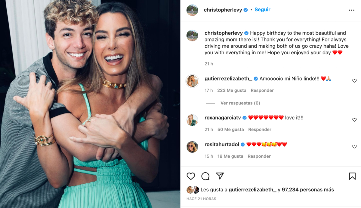Lo que no faltó fueron las felicitaciones por parte de sus hijos, quienes la conmovieron por sus tiernas palabras. Christopher Levy compartió una imagen junto a su mamá y escribió: "Feliz cumpleaños a la mamá más hermosa e increíble. ¡Gracias por todo!".