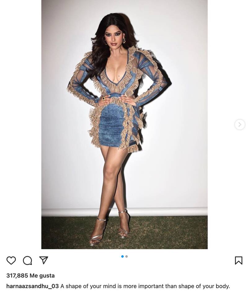 A través de su cuenta oficial de Instagram, Harnaaz Sandhu compartió una fotografía en la que aparece posando con un vestido azul. "La forma de tu mente es mucho más importante que la forma de tu cuerpo", escribió.