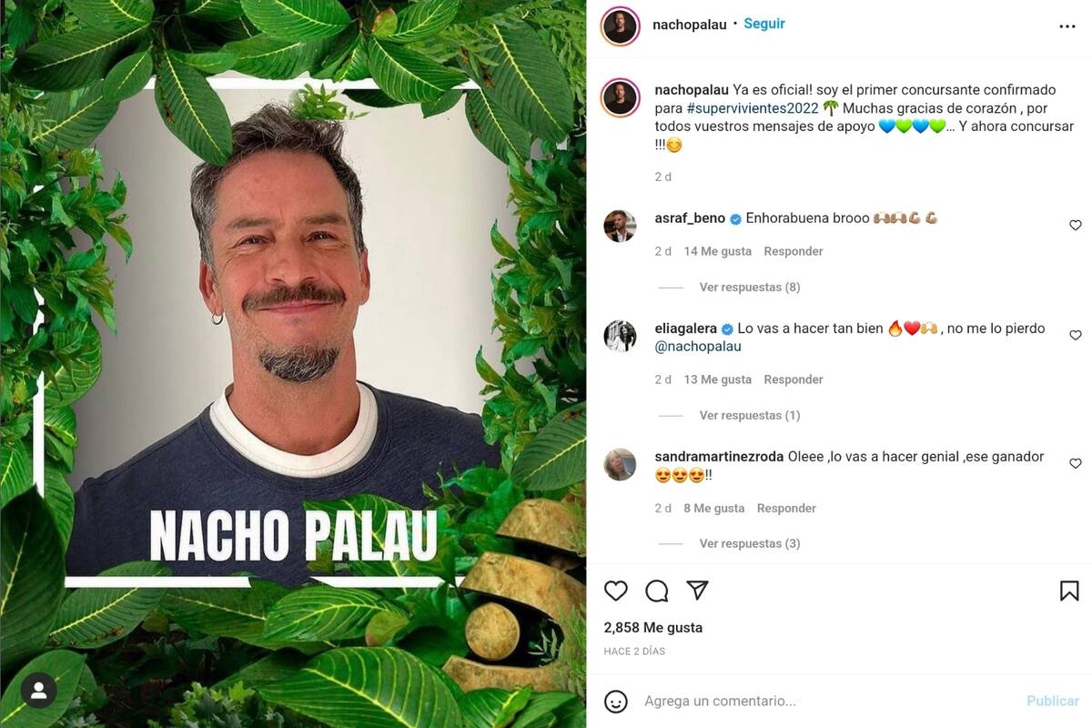 En medio de la batalla legal que libra por la custodia de los cuatro hijos que comparte con Miguel Bosé, el artista Nacho Palau participará en el "reality show" "Supervivientes". La noticia fue dada a conocer por la cadena que emite este concurso, Telecinco, y después fue confirmada por Palau en sus redes sociales.