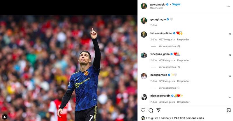 Aunque fue en el partido de la semana pasada, Georgina no había hecho ningún comentario. Y apenas acaba de compartir la foto de su esposo acompañada de un emotivo corazón blanco.