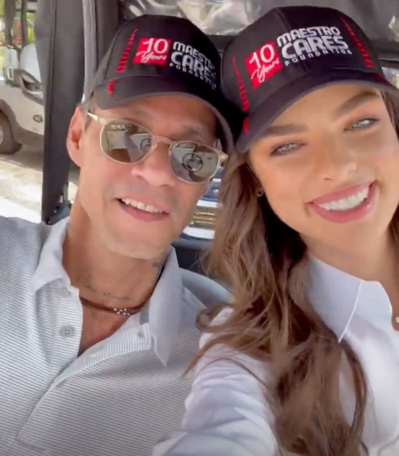 Marc Anthony y Nadia Ferreira se dejan ver muy románticos en torneo de golf