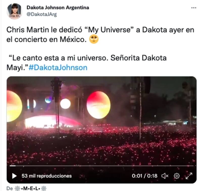 Al tanto, algunos fans no dudaron en captar a Dakota Johnson a la distancia, mientras que los más afortunados aprovecharon para tomarse fotografías con ellas. Algunos dices que durante el concierto, Chris Martín le dedicó la canción "My Universe".