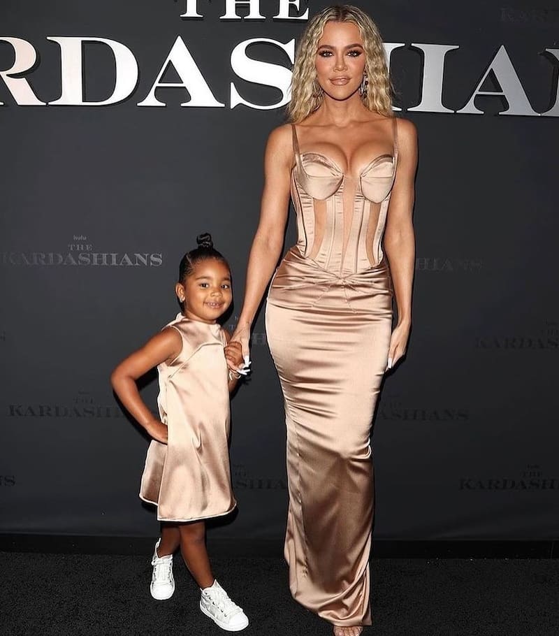 Khloé Kardashian y True Thompson conquistaron en match outfits con vestidos en color bronce.
