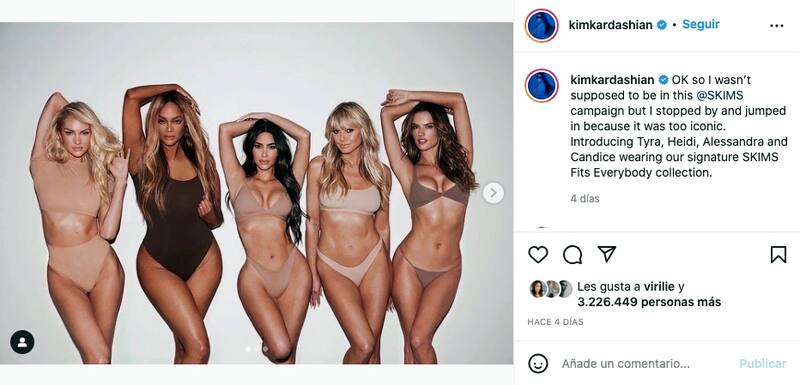 Kim Kardashian estrenó apenas hace unos días su nueva línea de su marca de lencería Skims, en la que participaron Heidi Kum, Tyra Banks, Alessandra Ambrosio y Candice Swanepoel, por lo que no desaprovechó el momento de incorporarse a la campaña con las supermodelos.