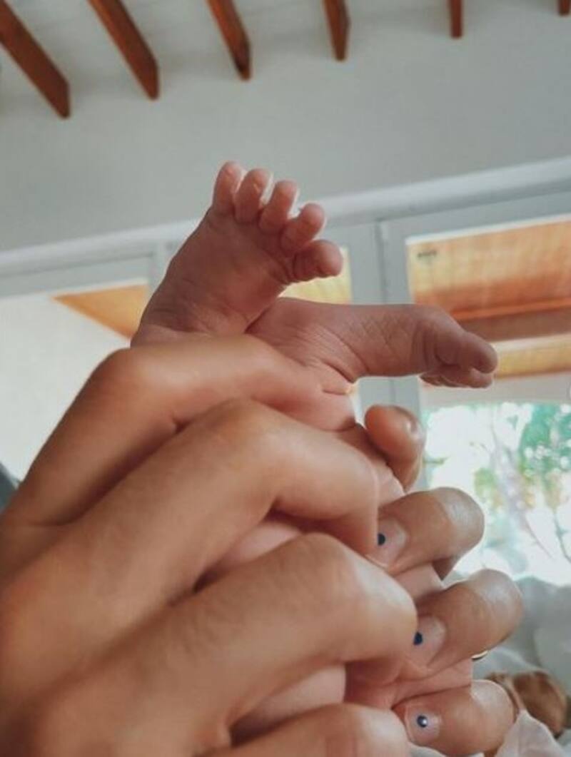 "Índigo nació. Dios estuvo presente en cada segundo del parto en nuestro hogar. Es una niña feliz y curiosa", escribieron en una publicación compartida en Instagram, al pie de una serie de tres fotografías en las que aparece sosteniendo los pies de su hija recién nacida.