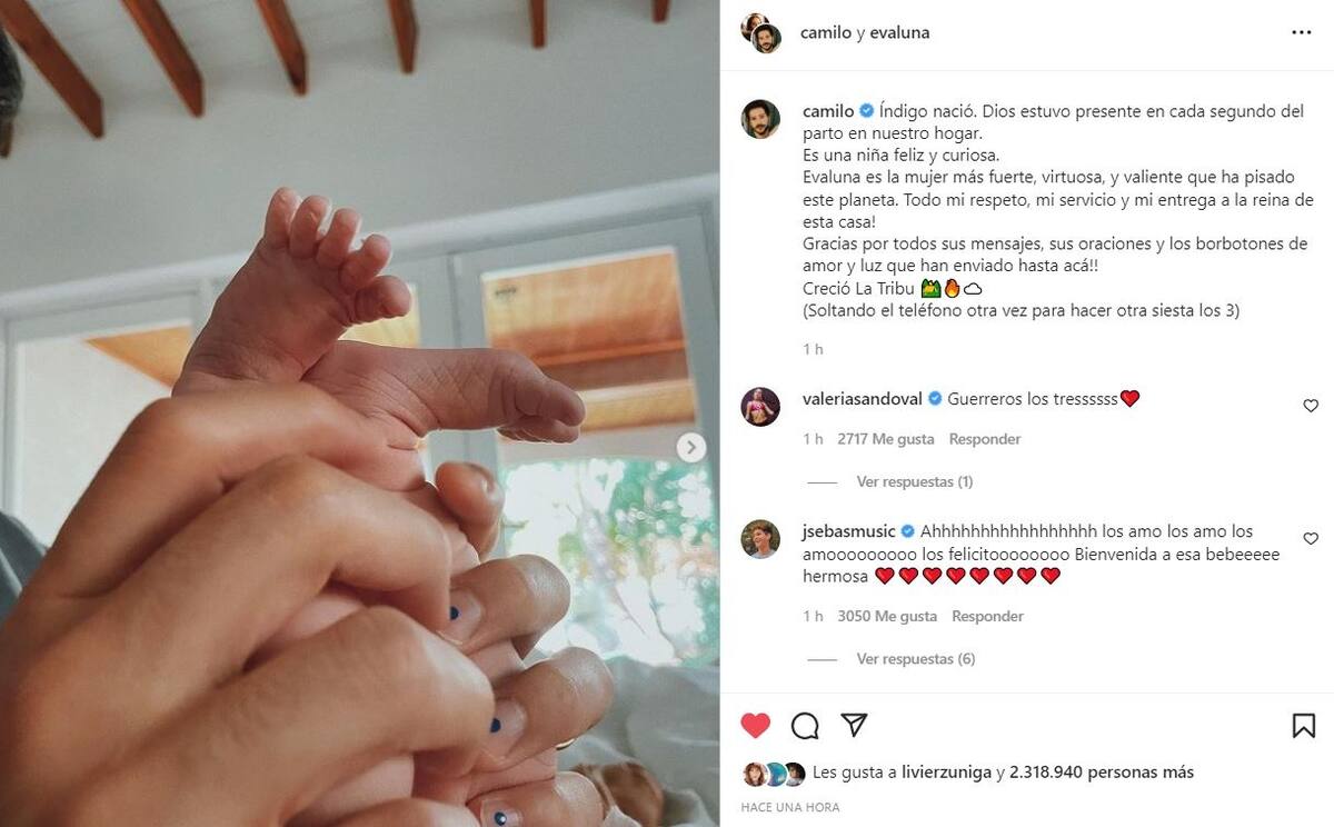 A unas horas de que Camilo y Evaluna Montaner confirmaron con tiernas fotos el nacimiento de su hija Índigo, las redes sociales estallaron en mensajes llenos de alegría y buena vibra para los famosos.