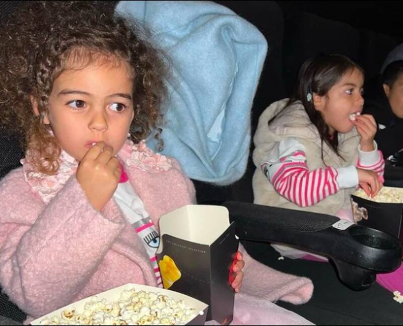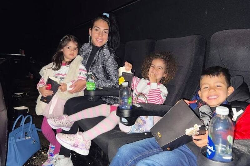 Mientras tanto, Georgina Rodríguez se mantiene en casa cuidando a sus pequeños. Tuvo una gran idea: llevarlos por primera vez al cine. Alana, Eva María y Mateo se emocionaron por el plan de fin de semana y con toda la energía de sus cuatro años intentaron ver una película.