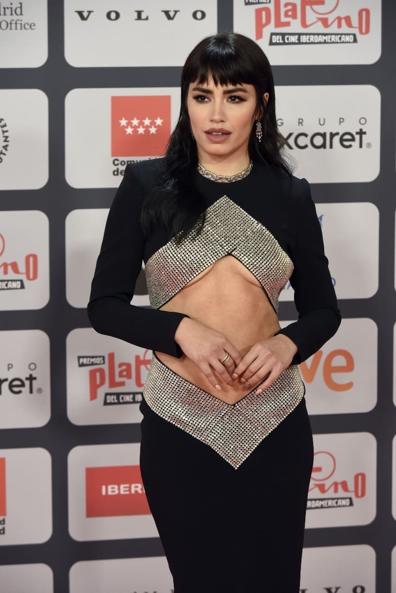 La cantante y actriz Belinda también pasó por la alfombra de estos premios que se celebran en la ciudad de Madrid. Belinda utilizó un sensual vestido negro con abertura en la pierna derecha y cortes geométricos por la parte frontal enlazados por un top.
