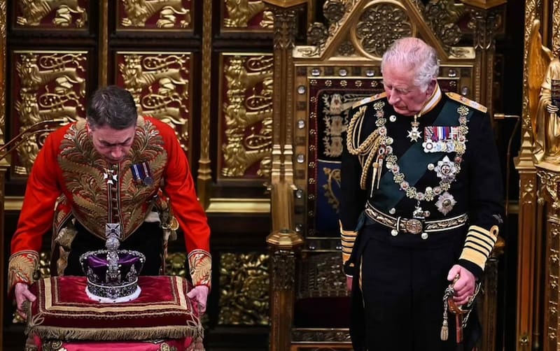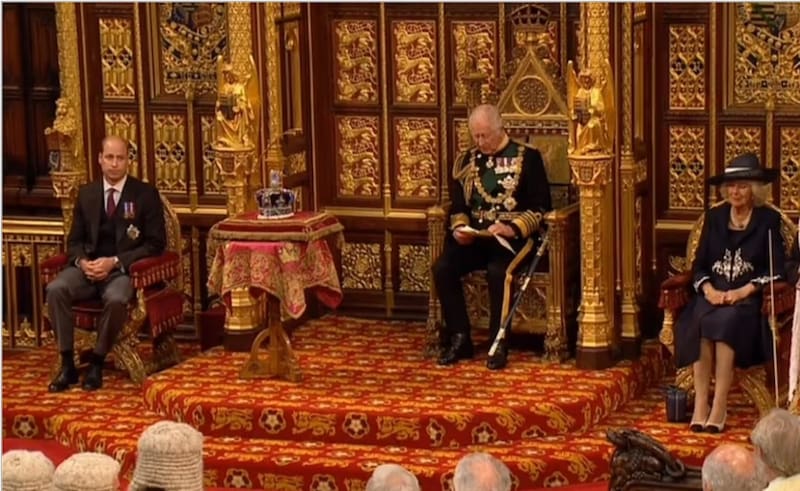El príncipe Guillermo y la duquesa de Cornualles, Camila Parker-Bowles, acompañaron al príncipe de Gales cuando pronunció el discurso desde el trono de la consorte, utilizado por su padre, el príncipe Felipe durante décadas, en un momento constitucional importante para el Reino Unido.