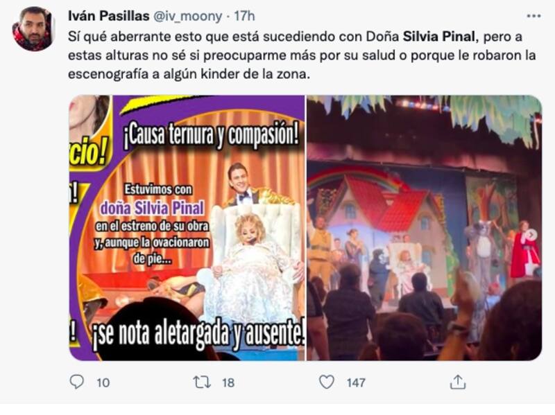 Los usuarios de Twitter criticaron la aparición de Silvia Pinal en el teatro. Aunque fue ovacionada, su estado causó más preocupación que otra cosa:
