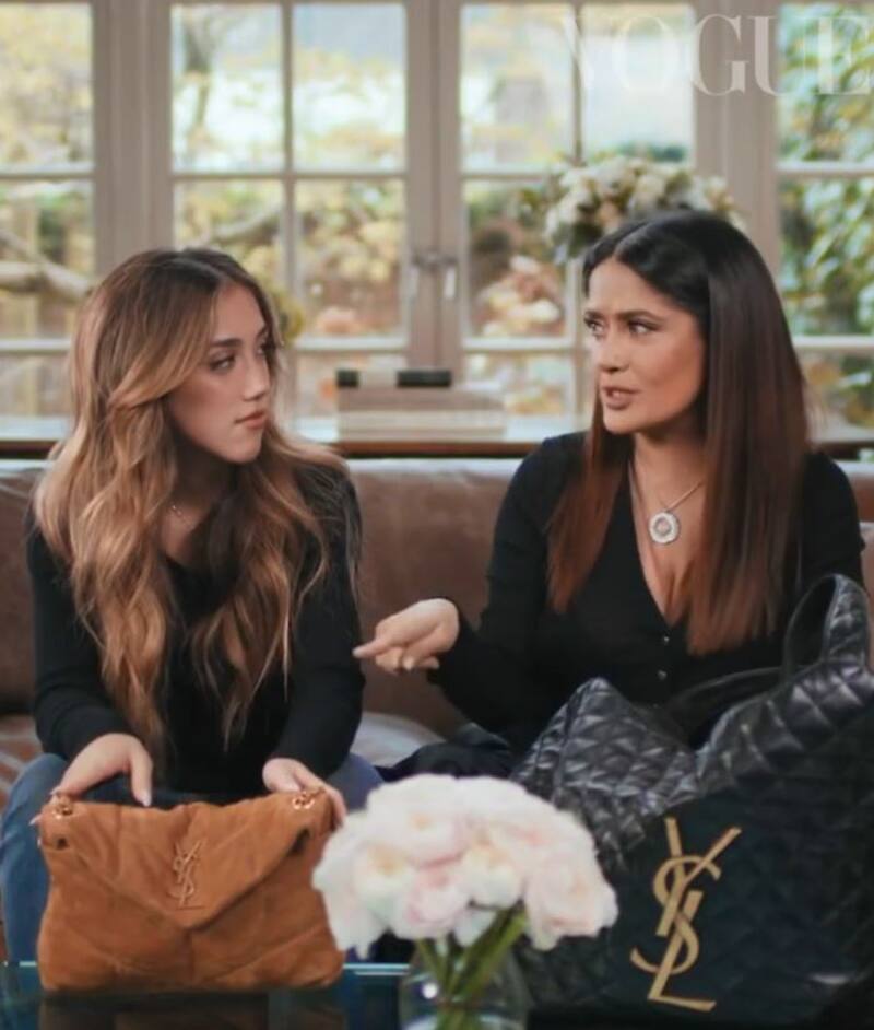 Salma Hayek con motivo del Día de las madres compartió un video en el que aparece junto a su hija, Valentina Paloma Pinault, mostrando lo que cada una guarda en sus bolsos.