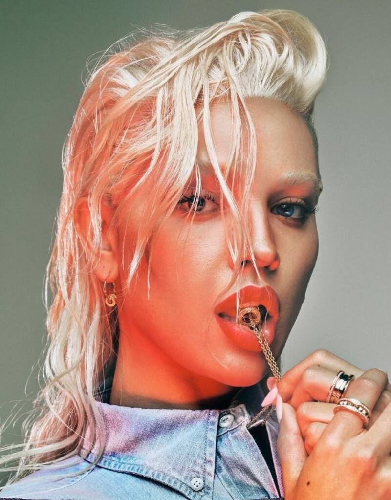 Las imágenes corresponden a una sesión de fotos para la portada de la revista V Magazine, las cuales fueron tomadas hace un par de semanas, pues en ellas se le puede ver con una espectacular melena rubia y sus cejas decoloradas, tal y como apareció en la premier de su más reciente película "Ambulance", en Londres.