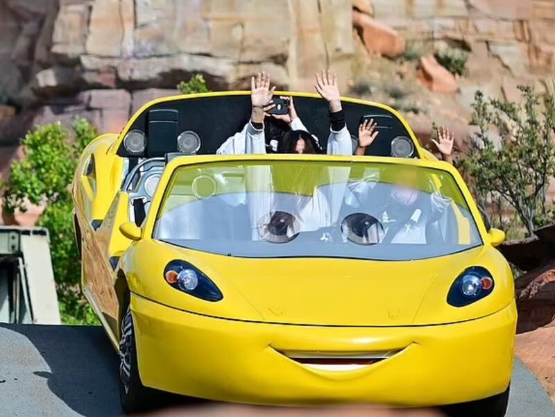 La estrella, quien también se le vio con una diadema de orejas de Minnie y lentes de sol, fue fotografiada en el paseo de Radiator Springs con sus pequeños mientras viajaba en un automóvil amarillo.