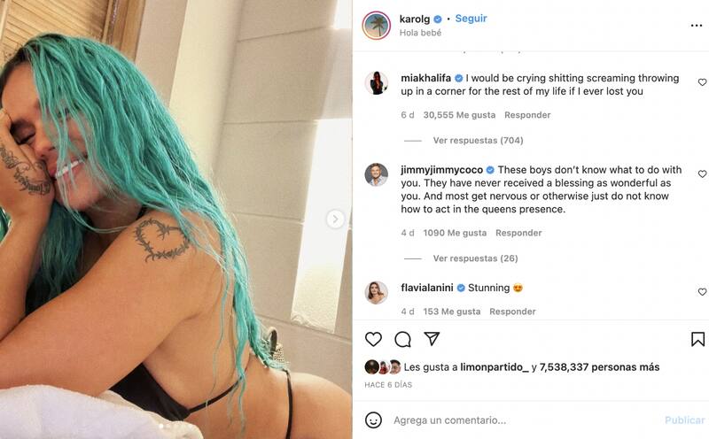 Recientemente la intérprete de "Provenza" publicó un post en donde se ve guapísima y empoderada ya que en el pie de foto escribió: "Estaba con alguien pero ya estoy free", a lo que sus millones de seguidores no pudieron dejar de llenar la publicación con "me gusta" y comentarios de halago pero sin duda el mensaje que reveló fue Mia Khalifa.