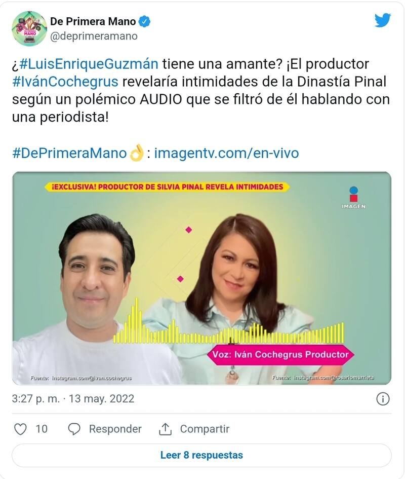 Sin embargo, el programa "De Primera Mano" presentó una conversación entre Iván Cochegrus y la periodista Rosario Murrieta a quien le hizo fuertes revelaciones de la familia Pinal. En el audio, se escucha que Iván le cuenta sobre la relación de Luis Enrique, el hijo menor de Silvia, y su esposa Mayela.